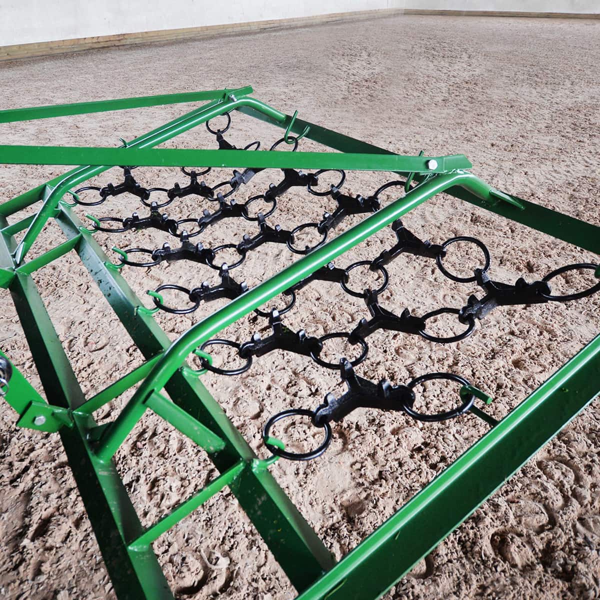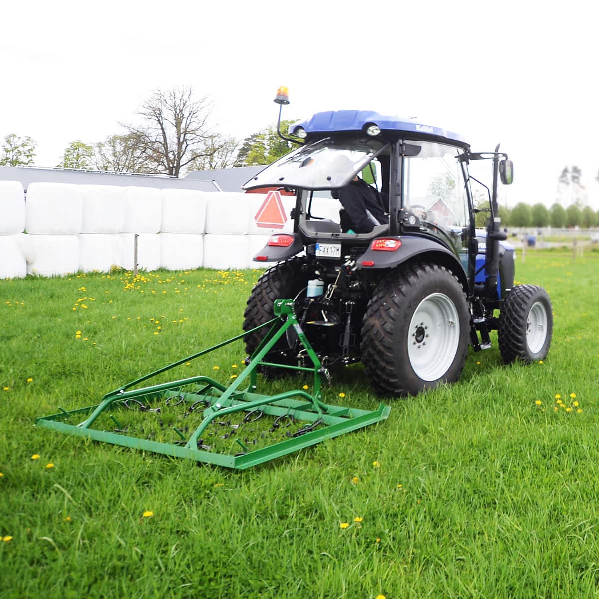 Die Wiesenegge eignet sich außerdem zum Glätten von Weiden, Paddocks, Reitplätzen usw. Die Eggensterne bestehen aus haltbarem Gusseisen und der Rahmen und die Dreipunkt-Halterung sind sehr stabil, um den Belastungen durch den Untergrund standzuhalten.