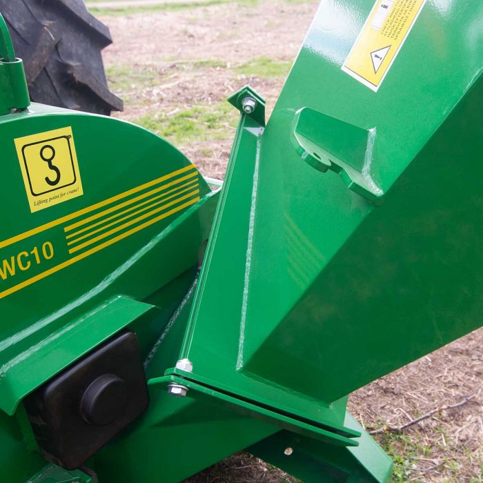 Kellfri-Häcksler WC10 häckselt Stämme mit einem Durchmesser von bis zu 10 cm mit einer Leistungsaufnahme von 30-45 PS; Montage am Dreipunk-Kraftheber des Traktors; Antrieb der Häckselscheibe direkt über die Zapfwelle des Traktors.