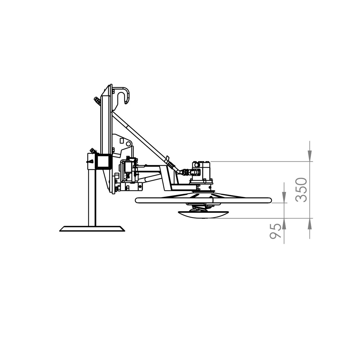 Der Zaunmäher wird seitlich an einem Rahmen für Ihren Euro-Lader montiert. Der Schneidkopf des Zaunmähers kann manuell an Ihrem Frontlader ausgerichtet und in die benötigte Position gebracht werden, um Ihnen eine größere Reichweite zu ermöglichen. Der Kopf hat außerdem eine Führung, damit er leicht dem Untergrund folgt.