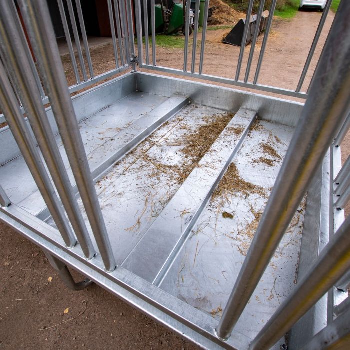 Für ein stabiles und sicheres Umsetzen verfügt die Heuraufe über eine integrierte Palettengabelaufnahme, sodass es keine hervorstehenden Teile gibt, die ein Verletzungsrisiko darstellen würden.